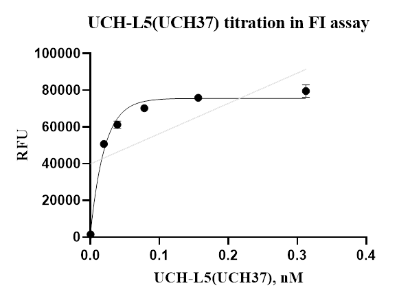 The UCH-L5(UCH37) activity was detected by cleaving the fluorogenic peptide substrate in FI assay. The reaction was performed by incubating the UCH-L5(UCH37) protein and substrate at 25℃ for 60 min, then reading RFU with BMG.
