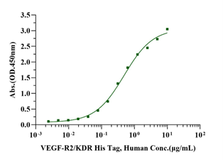 Immobilized VEGF-121, Human (Cat. No. UA040082) at 2.0μg/mL (100μL/well) can bind VEGF-R2/KDR His Tag, Human (Cat. No. UA010164) with EC50 of 0.39-0.65μg/mL.